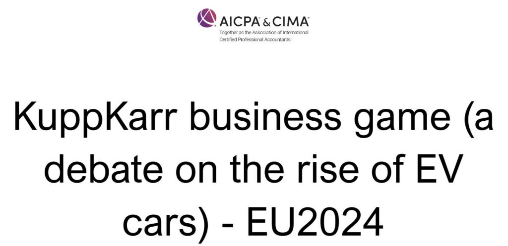 Це бізнес-гра від AICPA&CIMA, яка увібрала в себе і перетворила в інтерактивну серію питань: кейси компанії «KuppKarr»*, кращі практики світових організацій, посилання на відповідні сторінки на веб-сайт та учбовий план AICPACIMA  і стала по суті диспутом на тему зростання ролі електромомобілів в світі.