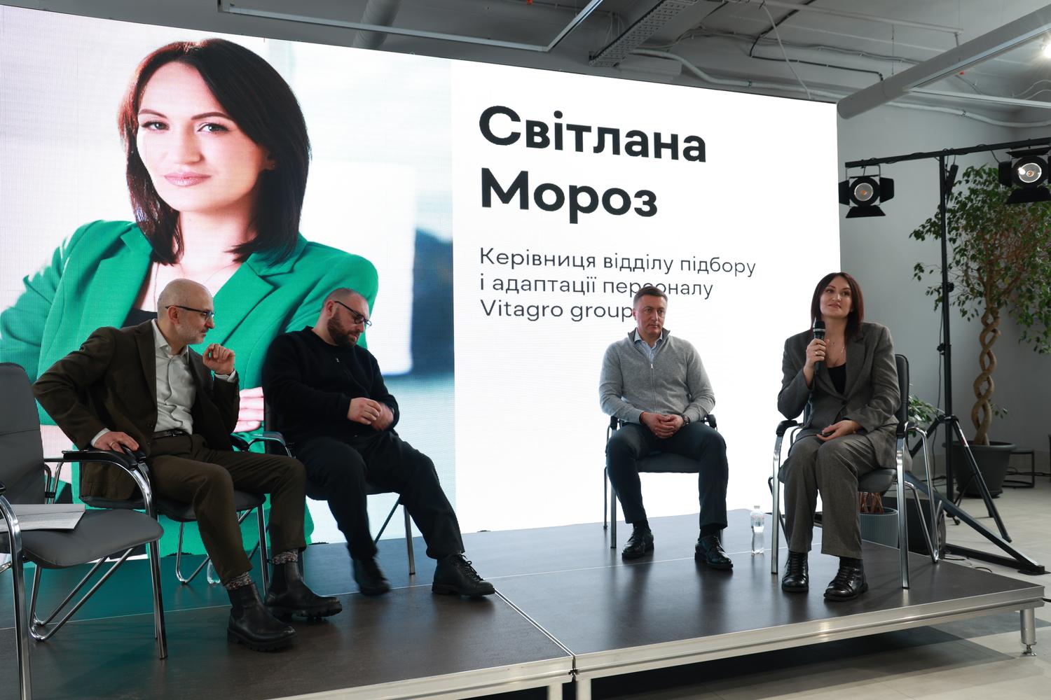 До зустрічі долучилися експерти компанії: Сергій Лабазюк, почесний президент VITAGRO, Світлана Мороз, керівниця напрямку рекрутингу, Назар Житкевич, директор з маркетингу, та Сергій Савчук, директор з розвитку та інвестицій.