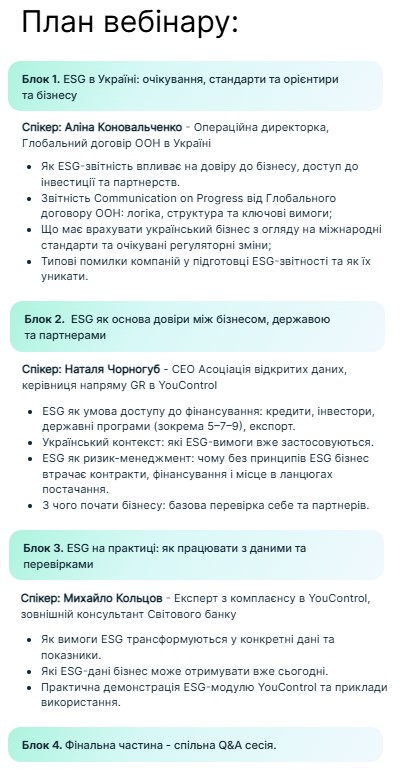 Під час вебінару учасники від нашого університету разом із провідними аналітиками YouControl розібрали ключові компоненти сталого розвитку: