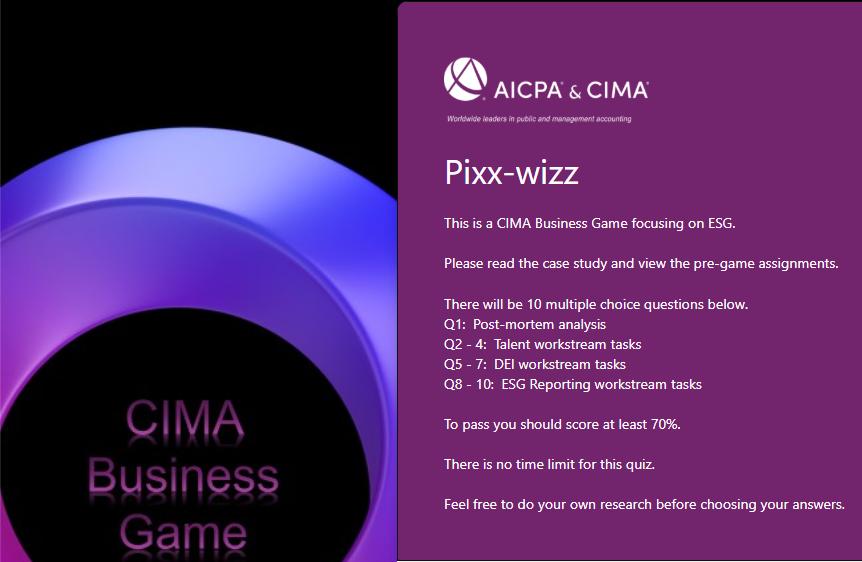 Кафедра обліку, аудиту та оподаткування ХНУ разом з AICPA&СІМА запрошує вас взяти участь у інтернет-версії бізнес-гри CIMA Business Game, що заснована на реальному фінансовому кейсі компанії «Pixx-wizz», кращих практиках світових організацій, посиланнях на відповідні сторінки веб-сайту та учбовий план CIMA.