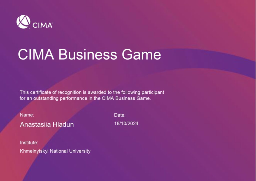 КРОК 5: Ви отримаєте сертифікат протягом 3-5 робочих днів після отримання ваших скрінів. Ми будемо дуже раді, якщо Ви розмістете своє фото з сертифікатом у соц.мережах з посиланням на #AICPA #CIMA #BDO Ukraine. СІМА-Україна також відзначить накрайщих гравців та розмістить інформацію про них на своїх сторінках у соц.мережах.