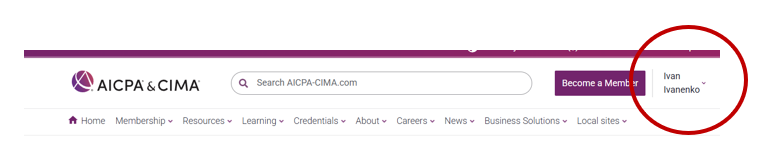 1. Скрін, що підтверджує реєстрацію на сайті AICPA&CIMA