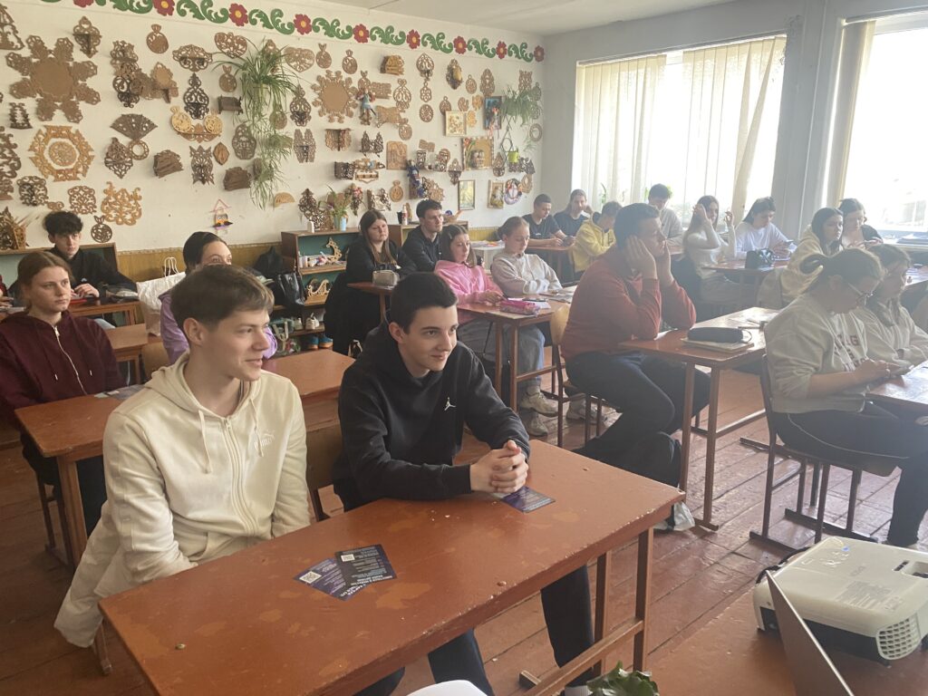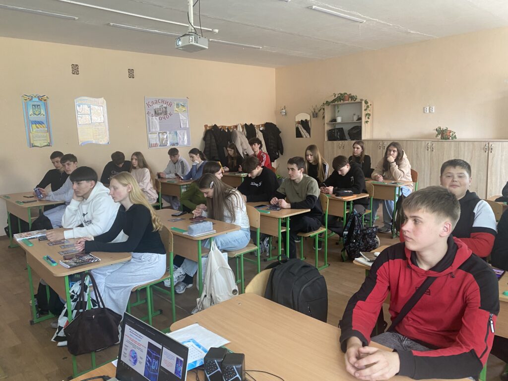 Особливу увагу було приділено живому спілкуванню: учні активно ставили запитання про особливості вступу-2026 та умови навчання в Хмельницькому національному університеті, приймали участь у бізнес-грі та долучилися до опитування «Моя майбутня професія».