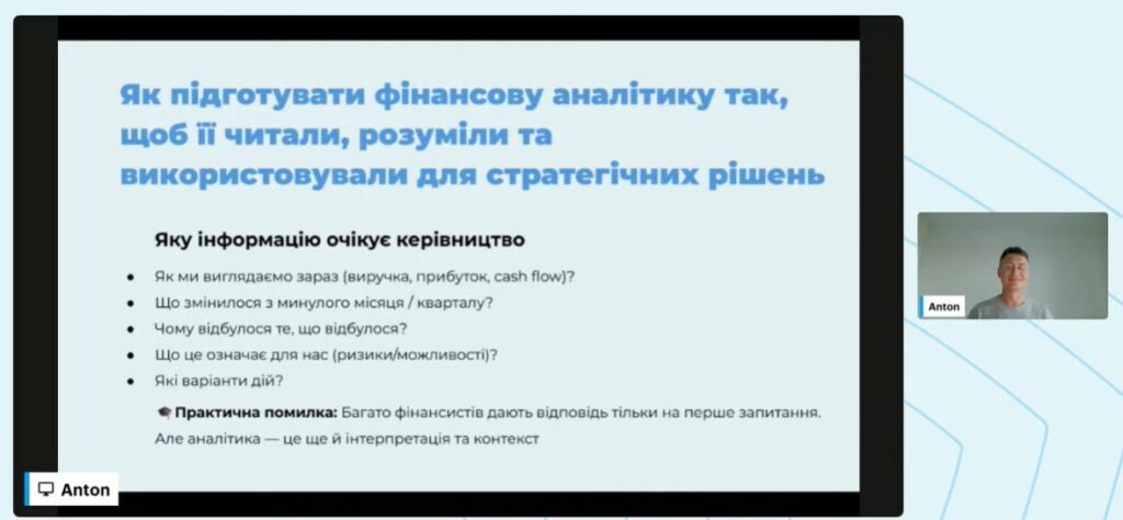Під час вебінару було розглянуто ключові форми фінансової звітності, необхідні для ефективного прийняття управлінських рішень: