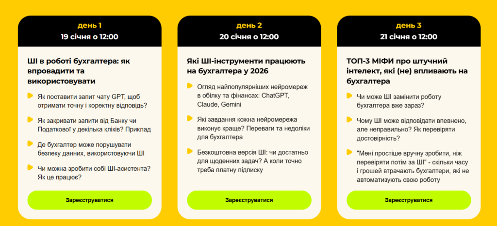 Під час вебінарів були розглянуті практичні питання формування коректних запитів до ChatGPT, автоматизації відповідей на запити банківських установ і податкових органів, ризиків порушення інформаційної безпеки при використанні ШІ, а також можливостей створення та використання персонального ШІ-асистента.