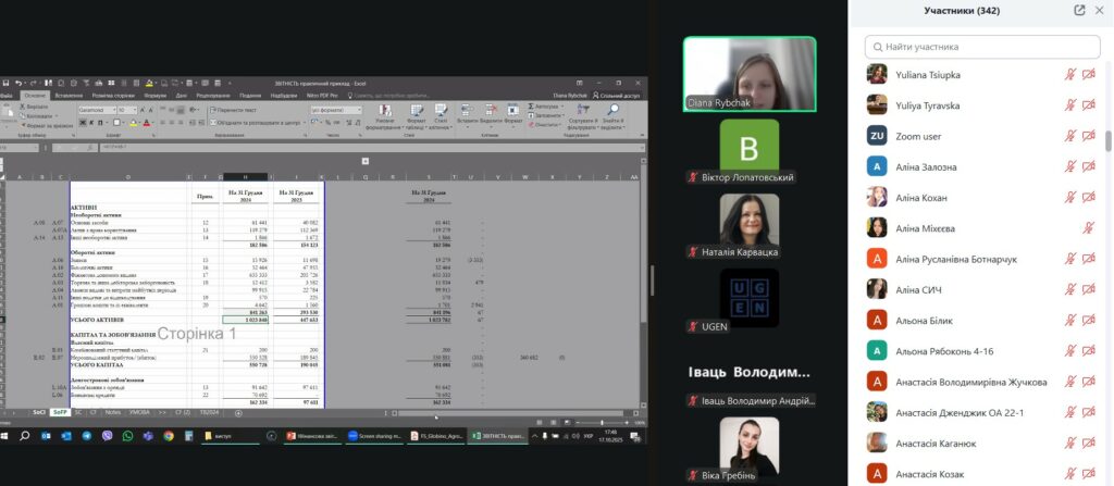 17 жовтня здобувачі вищої освіти четвертого року навчання за освітньою програмою «Облік і оподаткування» (ОС «Бакалавр») для закріплення знань, отриманих під час вивчення навчальних дисциплін «Звітність підприємств» (викл.: канд. екон. наук, доцент Віктор Лопатовський) та «Аудит» (викл.: канд. екон. наук, доцент Володимир Ченаш) приєдналися до вебінару на тему: Фінансова звітність: практичний розбір взаємозв’язку між формами, проведеного у рамках Economist Career Way.