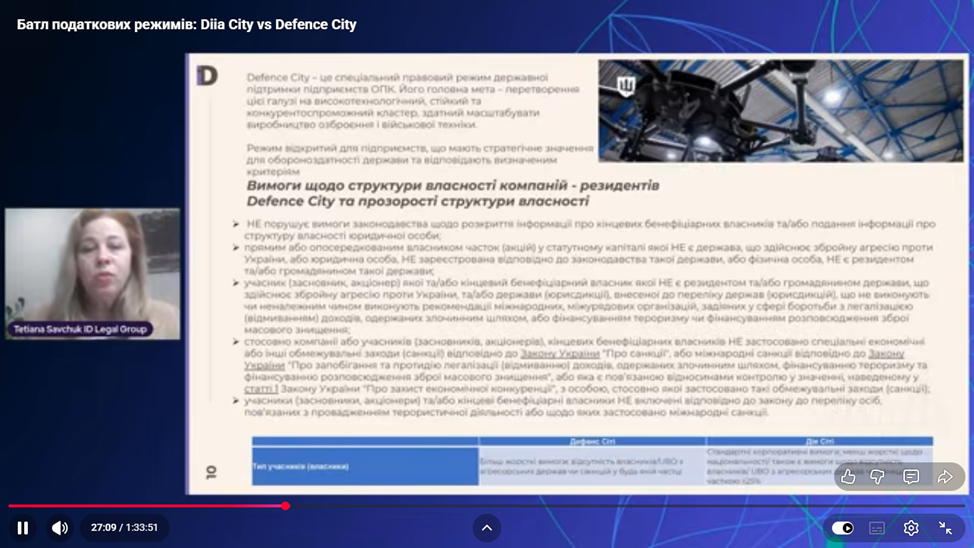 Правові підстави та критерії входу до Defence City та Diia.City. Терміни дії режимів, вимоги до структури власності та статусів компаній.