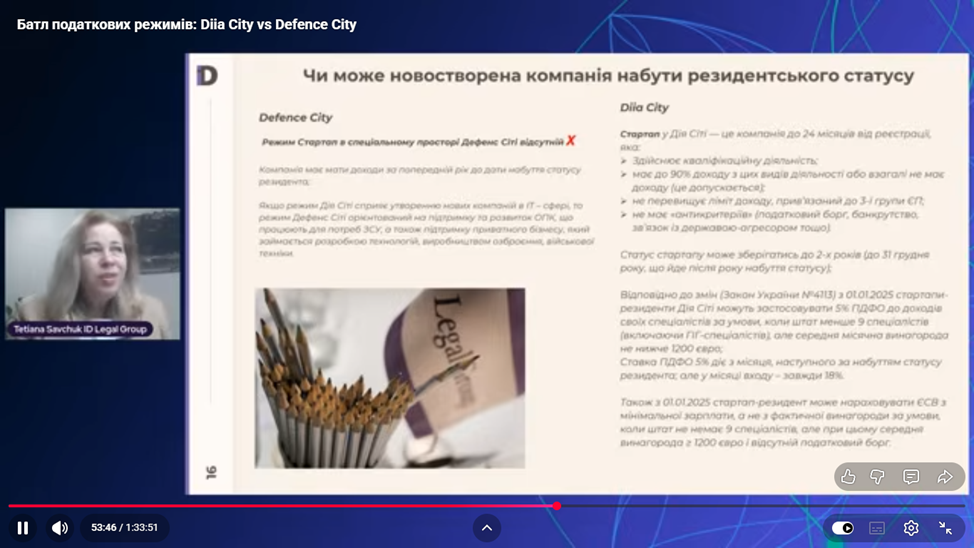 Спікеркою заходу була запрошенаТетяна Савчук – кандидат економічних наук, сертифікований аудитор, керівник практики міжнародного оподаткування та аудиту ID Legal Group. Під час вебінару представники від університету мали унікалькальну можливість з’ясувати умови, особливості та переваги нового податкового режиму, зокрема: