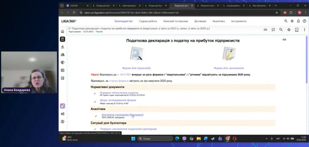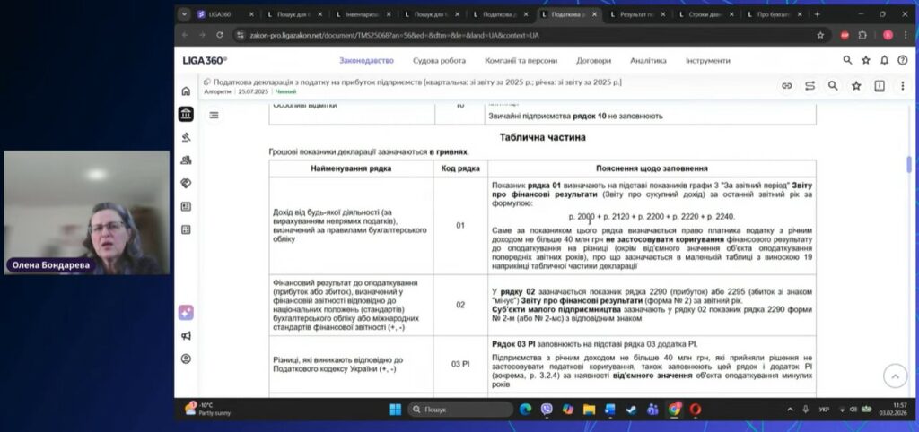 03 лютого 2026 року представники кафедри обліку, аудиту та оподаткування Хмельницького національного університету, а саме канд. екон. наук, доцент Віктор Лопатовський разом із студентами освітніх програм «Облік і оподаткування» у рамках опанування освітніх компонентів «Звітність підприємств» та «Інформаційні системи звітності» долучилися до масштабного фахового вебінару «Фінансова звітність і податок на прибуток – 2025: критичні точки для бухгалтера» від онлайн-платформи LIGA360.