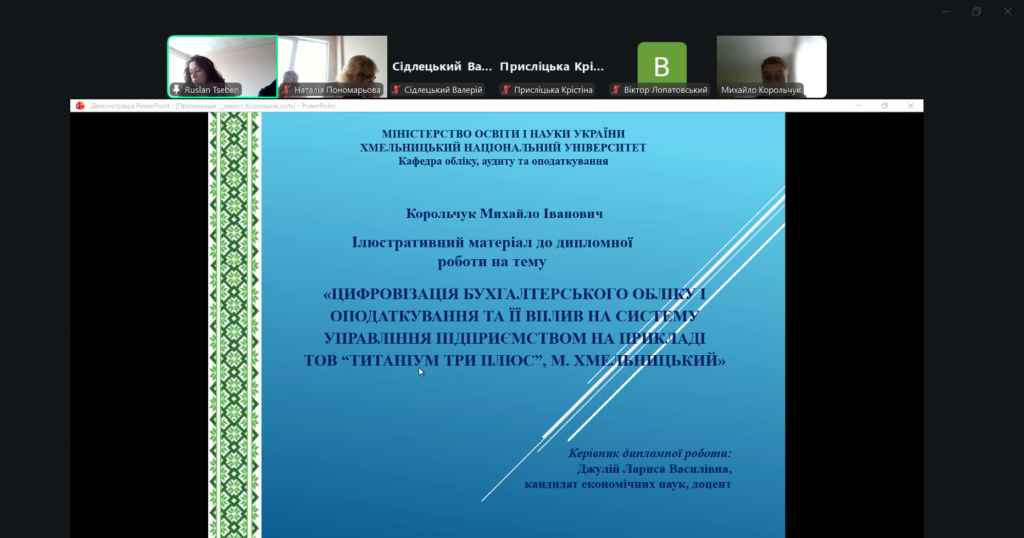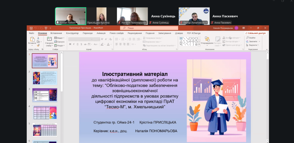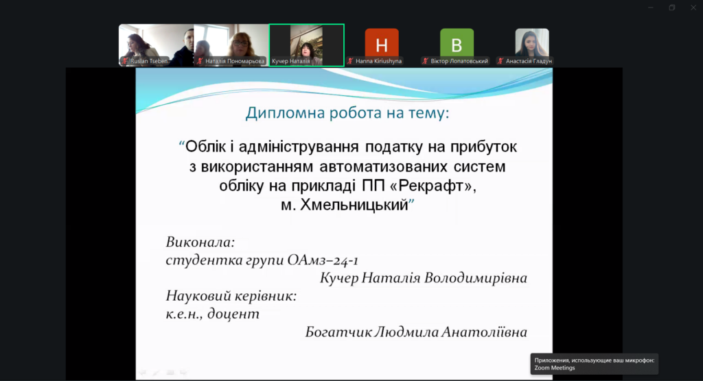 29 грудня 2025 року на кафедрі обліку, аудиту та оподаткування відбувся захист кваліфікаційних (дипломних) робіт здобувачів другого (магістерського) рівня вищої освіти за спеціальністю 071 «Облік і оподаткування». Захід став завершальним етапом освітнього процесу та важливою формою підсумкової атестації випускників.