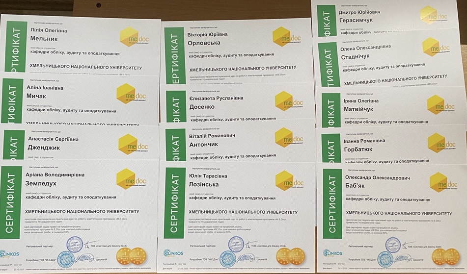 Здобувачі першого (бакалаврського) рівня вищої освіти ОП «Облік і оподаткування» отримали сертифікати за вміння користування програмним продуктом «M.E.Doc» від ТОВ «Системи для бізнесу»